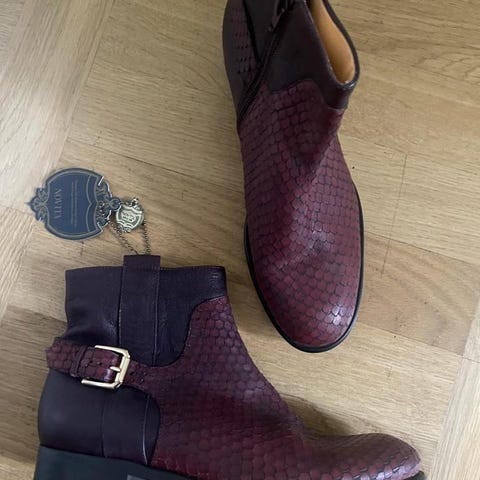 Finskor av äkta läder av märket Novita i storlek 37. Skorna har en fyrkantig tå och ett dekorativt spänne framtill. Passar för formella eller vardagliga tillfällen. Enormt sköna! Använda endast en gång, en mycket kort stund så de är som gott som helt nya! Säljer pga fel storlek :(
