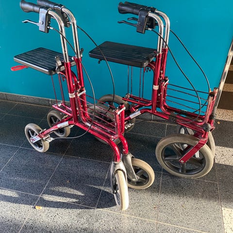 Rea rollator med fyra hjul, utrustad med handbromsar för ökad säkerhet. Rollatorn har ett lättviktsramdesign som gör den enkel att manövrera och transportera. Passar för personer som behöver stöd vid gång och balans.