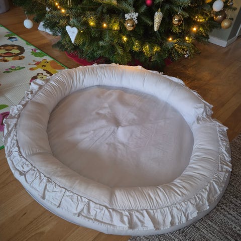 Knapp använd babypöl av stor modell i härlig gul färg, med avtagbar klädsel som går att tvätta.