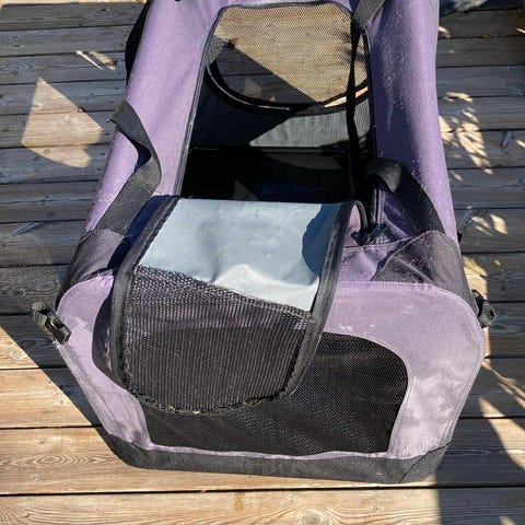 Savic hundbur i metall med avtagbart tygöverdrag. Burens konstruktion är i metall och den har en svart plastbotten. Tygöverdraget är grått och kan tas bort. Burens design inkluderar en dörr med låsning och den är hopfällbar för enkel förvaring och transport.
