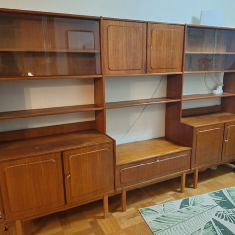 Retro Teakmöbler Vitrinskåp, bokhylla, hyllor i teak.