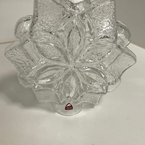 Orrefors glasvas och oljelampa i glas. Vasen har en organisk form med klar glasdesign. Oljelampan är blå med vit marmorering och har en metallkåpa med veke. Vaser och skålar och oljelampa i nyskick från kända konstnärer som Vicke Lindstrand, Bengt Orup och Björn Ramel i mycket fint skick.