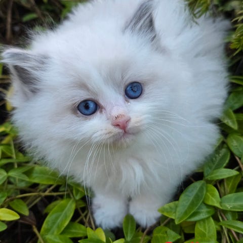 Mamma och pappa är utan stamtavla men 100% långhåriga ragdoll 🐾 med klart ljusblå ögon 💙 – likaså deras kull.