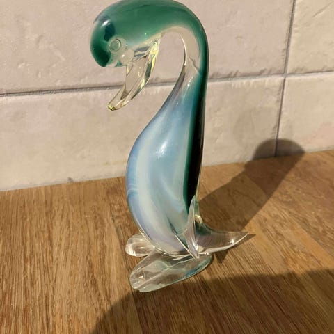 Emil Milan glasfågel i färgerna grön och blå. Tillverkad i glas med en unik design som kombinerar färger och form. Tre vackra konstverk i konstglas från FM konstglas i Ronneby.