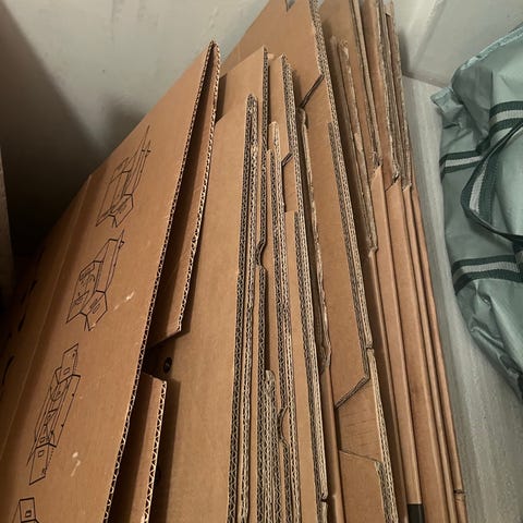 Biltema kartonglåda med måtten 50x40x30 cm. Tillverkad av kartongmaterial, lämplig för förvaring och flyttning av olika föremål. Använda vid en flytt.