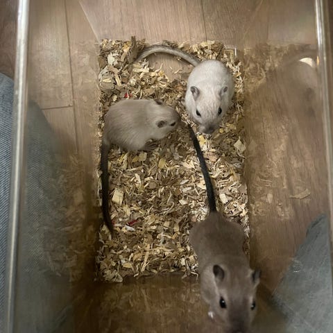 Säljer två degus honor med bur (akvarium) samt lite små tillbehör