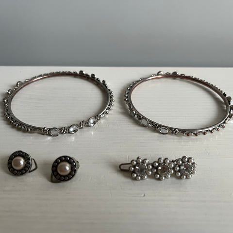 Massvis med smycken i jättefin skick. Det finns fler bilder men allt får tyvärr inte plats. Jag har även filmat video om man vill se mycket tydligare och närmare på allt, det finns allt från ringar, armband, navelpiercingar (äkta silver, självklart aldrig använda) örhängen, halsband, kors, nyckelringar, och massa annat.