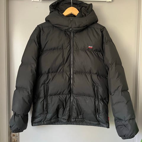 Levi's vinterjacka i denimmaterial, blå färg, storlek S för herr. Jackan är designad för kallare väder och har en fodrad insida för extra värme.