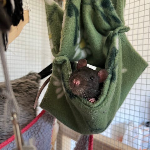 Hej har nu kvar denna lilla kille från min kull. Han är en augusti Berkshire och är född 28/10-2025. Han är nyfiken och social liten kille, kommer gärna fram till en och leker och gosar med en🥰 Han vill komma till ett hem med fler råttor då han är ensam (hane) kvar från sin kull.