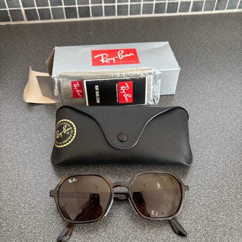 Ray-Ban solglasögon för kvinna med svart båge och mörka glas. Inkluderar brunt fodral i läderimitation.