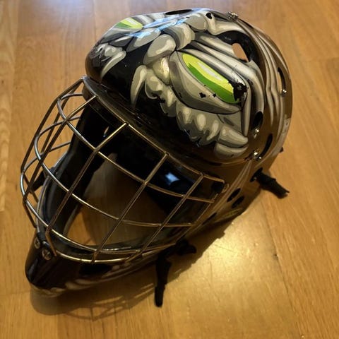 Nu säljer jag min älskade innebandyhjälm och de är inte vilken hjälm som helst. Promask Predator, som inte tillverkas längre men som alltid påpekas av andra målvakter att jag har just den hjälmen.