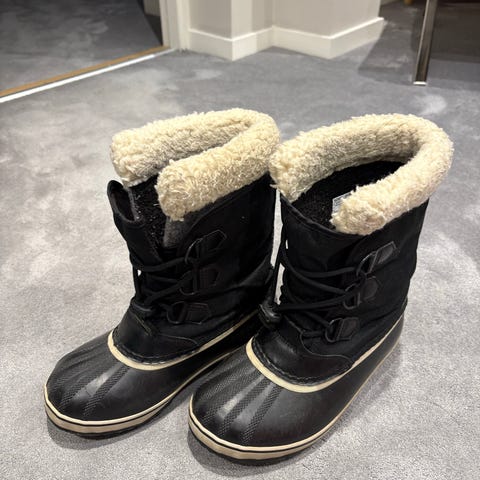 Skorna är svarta och har ett värmeisolerande foder i ull för att hålla fötterna varma.