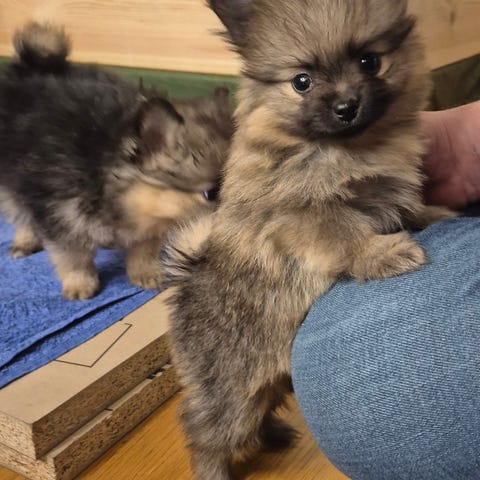 Pappa är pomeranian på 2kg och mamma är kinesiskt nakenhund/chihuahua på 3.5kg.
