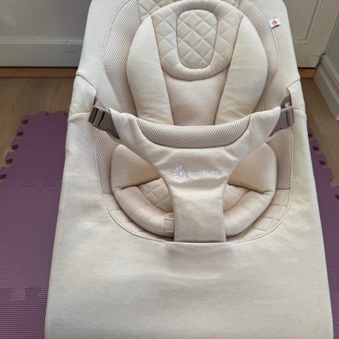 Fin babysitter från Ergobaby med spädbarnsinlägg som är guldvärt med en nyfödd. Går enkelt att ta av sen i takt med att barnet växer.