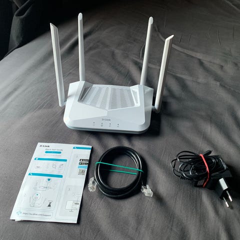 Levereras förinstallerad och redo att användas (nätverksnamn och lösenord står på undersidan av routern).