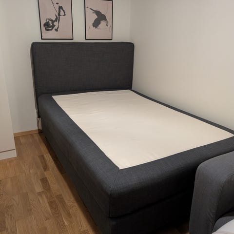 Säljer en 140 säng med madrass med tillhörande nytt sängöverdrag från IKEA.