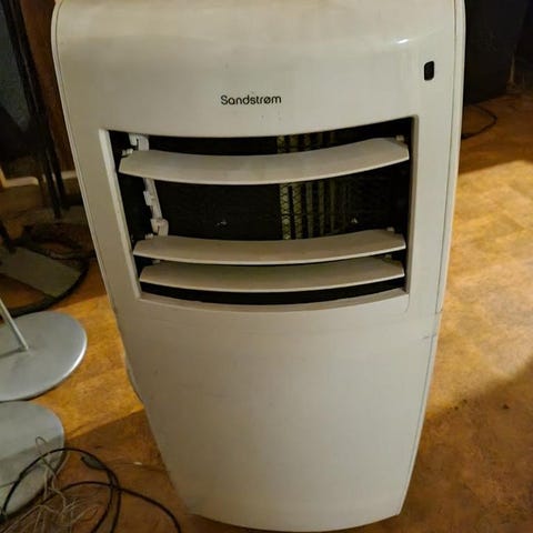 Portabel AC köpt på Biltema för några år sedan. Sparsamt använd och fungerar klockrent. Fjärrkontroll och rör ingår.