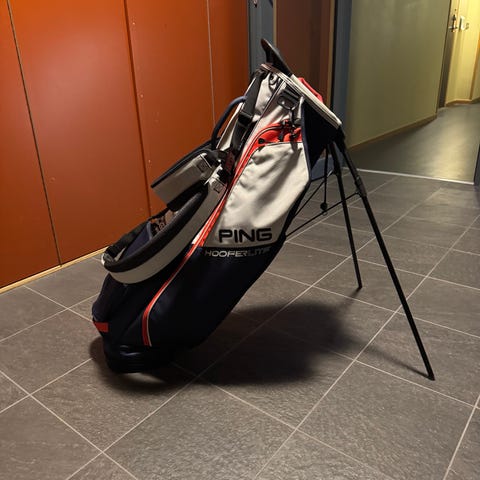 Ping Pioneer golfbag i svart färg. Utrustad med flera fickor och uppdelad för att organisera golfklubbor. Designad för att underlätta transport och förvaring av golfutrustning.