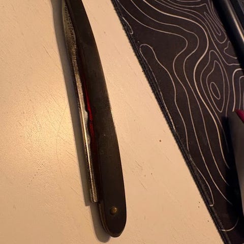 En rakkniv från Erik Anton Berg, tillverkad i Eskilstuna. Märkt med "GARANTIC SWEDEN" och en fisk-symbol. Inkluderar ett etui.