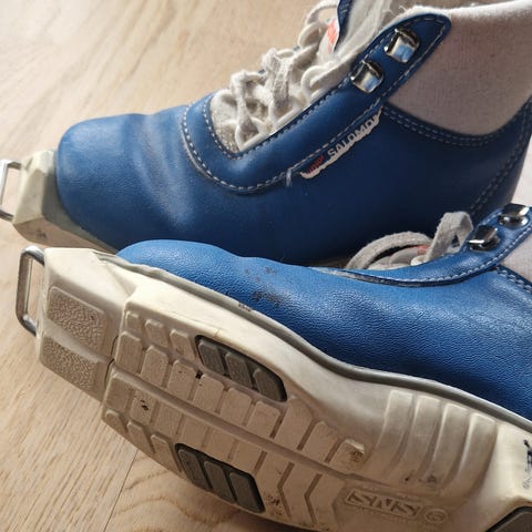Salomon längdskidpjäxor i silver och svart färg. Skorna har en dragkedja och snörning för justerbar passform. Sulan är anpassad för längdskidåkning och materialet är designat för att ge stöd och komfort under användning. Storlek 46= 29,5cm