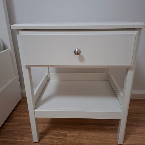2 st Vita sängbord med grå skiva i riktigt trä. Väldigt fina. Nypris 5800kr för båda .säljes för 1500kr för båda . Svarar inte på oseriösa bud