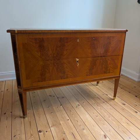 rot fan’er på lådfronterna & läderhandtag