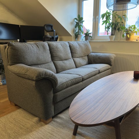 3 sits soffa från soffadirekt. Nypris ca 12000kr. Soffan har slitna armstöd men går lätt att dölja med filt.