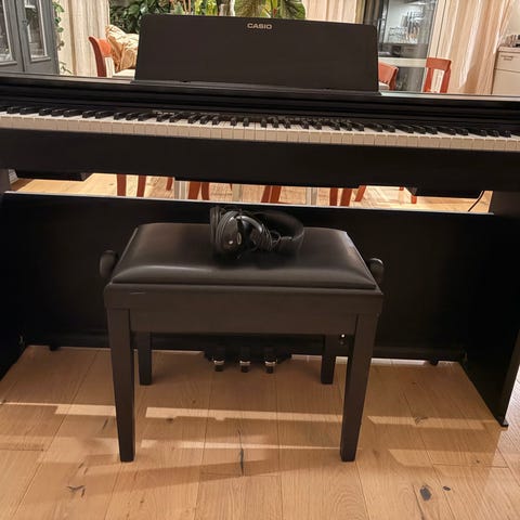 Casio Privia PX-500L digitalpiano med 88 tangenter. Ett bra piano om du vill lära dig spela piano. Har flera förinställda låtar att öva till . Tangenterna lyser där du ska spela. Helt okej spelkänsla med "vägda" tangenter. En lite bättre sustainpedal än orginal. Hemmabyggt stativ följer med om så önskas. Kolla in pianot på YouTube, där kan man se hur det funkar.