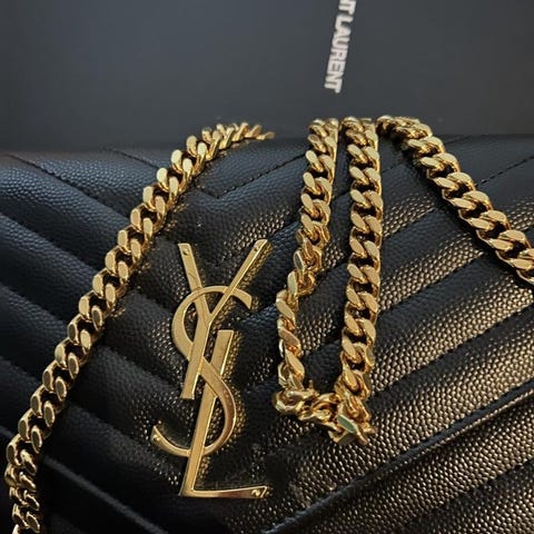 YSL aftonväska / clutch i quiltat svart läder med silverdetaljer.