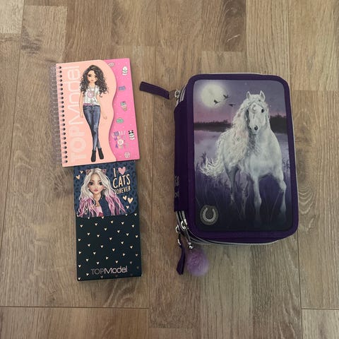 Topmodel pennskrin utan innehåll, lite märken från pennor, vet ej om man kan putsa / sudda bort det. Pris: 69kr (nypris ca 599kr).