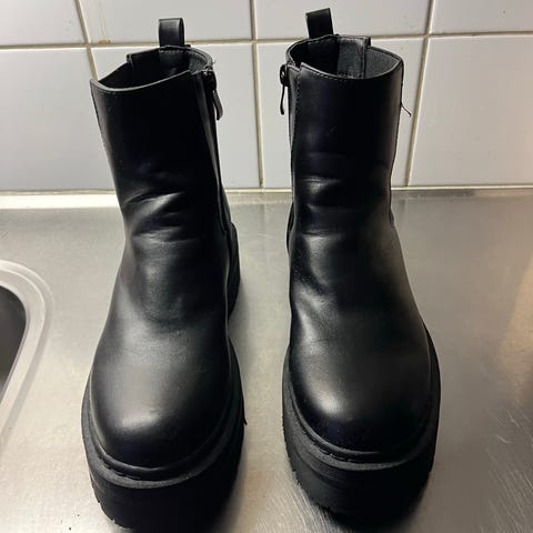 Svart känga med dragkedja och fodrad med stl 39 bling.