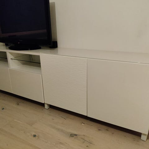 Säljer ikeas bestå tv möbler som är i nyskick. Färg på stomme är ek och dörrar lappviken vit.