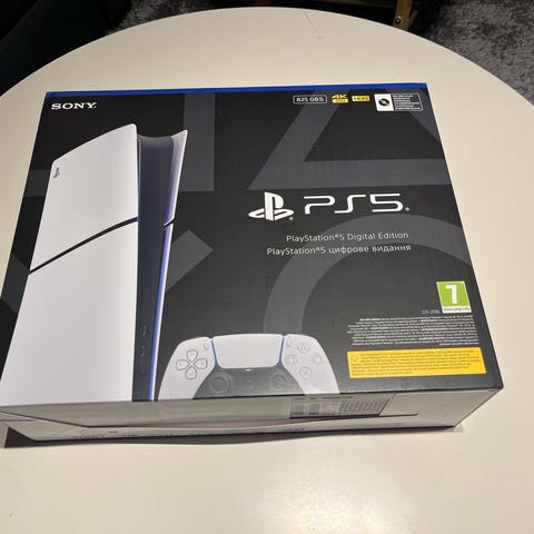 Sony PlayStation 5 Spelkonsol med vit design. Inkluderar en trådlös handkontroll. Passar för spel i hemmet och erbjuder avancerad grafik och prestanda.