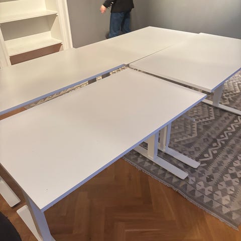 Vitt höj- och sänkbart skrivbord med vev säljes.