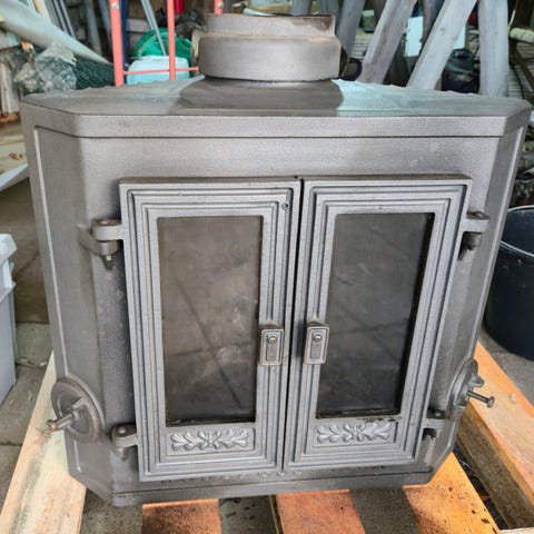 Fin kamin som inte använts mycket, men fungerat väldigt bra. Effektiv variant som tar ganska stora vedträn. Prutat och klart. Finns i Limhamn.