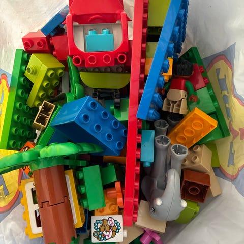 LEGO City minifigur med vit hjälm och blå kläder, medföljande blå motorcykel och en liten hundfigur. Setet inkluderar även en mjölkförpackning med texten 'I love dog'.