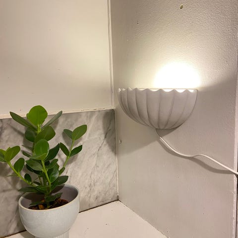 Säljer vår fina retro snäcklampa i porslin vi köpte för ett tag sen.