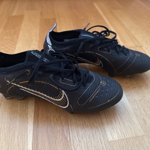 Nike fotbollsskor i olika storlekar (39, 38,5, 40) och färger (gul, blå, orange, svart, vit). Skorna är avsedda för olika användare och kan användas för fotbollsspel på olika underlag.