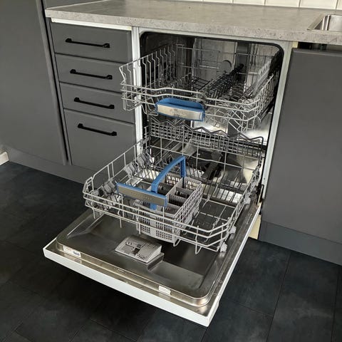 Bosch underbyggd diskmaskin i rostfritt stål. Maskinen är designad för att byggas in under bänkskiva och har en inbyggd kontrollpanel. Den har flera korgar för effektiv placering av disk och bestick. Maskinen är tillverkad i rostfritt stål vilket ger en hållbar och lättskött yta.