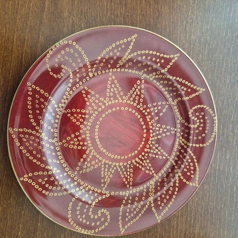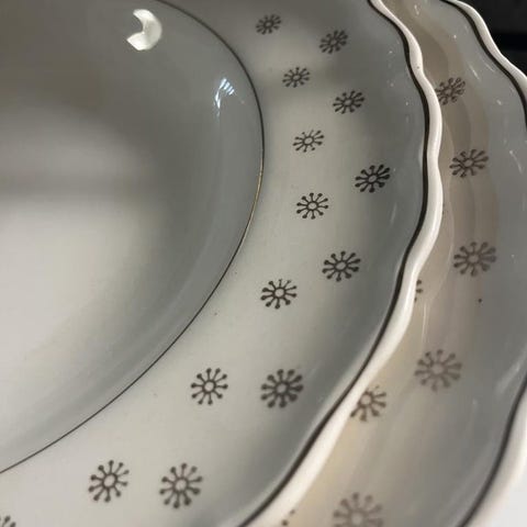 En tallrik och ett mindre uppläggningsfat har liten kantskada