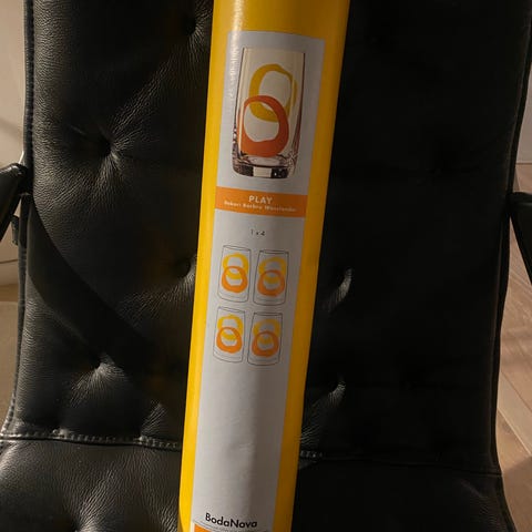 Glas i bra skick, ej använts, de vita är bortskrapat på vissa