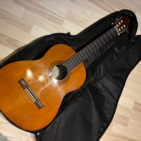 Säljer en klassisk akustisk gitarr med nylonsträngar i 3/4 storlek.