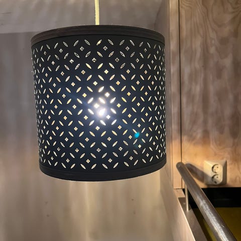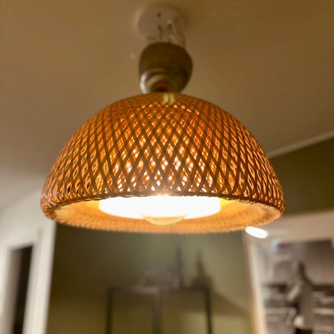 Handgjord taklampa i bambu från IKEA. Glödlampa ingår.