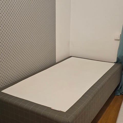 Nu har sonen bytt till större rum och med det också köpt en större säng, där av säljer vi denna säng.