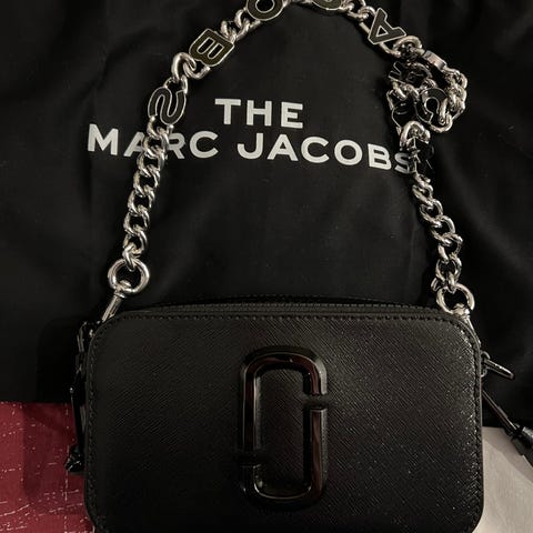Marc Jacobs läderväska för kvinna med justerbar axelrem och guldfärgade detaljer. Väskan har en kompakt design med dragkedja och är gjord i lädermaterial.
