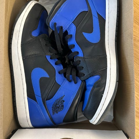 Air Jordan Sneakers i storlek 42,5. Skorna har en kombination av svart och blå färg.