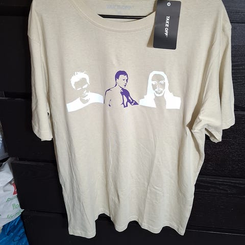 Begagnad i okej skick: Den är rätt urtvättad, ingen skada, printen är i okej skick då på baksidan den är lite sliten därför det låga priset (se bilder).