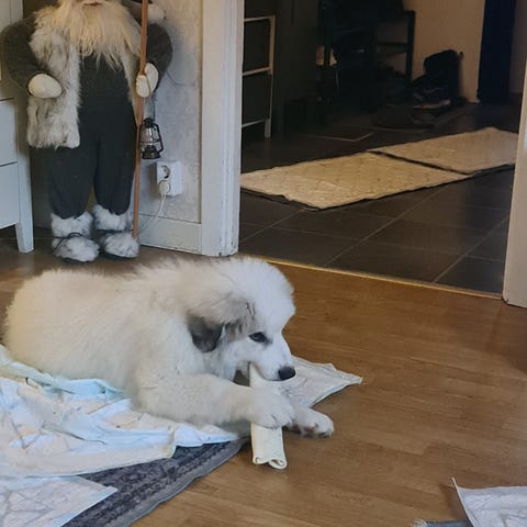 Van vid hundgård, är rumsren men inte tränad på att vara inomhus (han tror allt löst är leksaker, så rekommenderar hundgård).