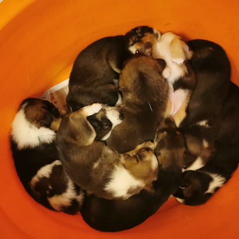 Har aldrig bråkat med någon av de andra hundarna, provoceras aldrig oavsett situation (mat, leksaker, annat) och är genomsnäll.