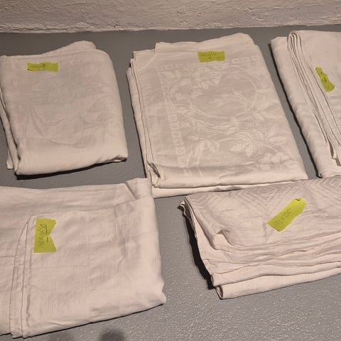 Linneduk 92 % lin, 8 % syntet (lavsan) som förhindrar krympning.